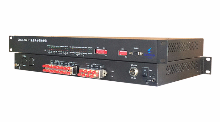 ZMUX-124是一款E1保護倒換設備,可對兩組不同路由的E1信號(線路)實現自動切換功能,滿足8路E1線路保護傳輸4路重要E1信號。